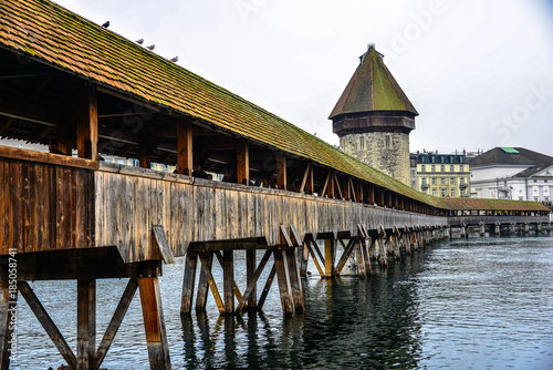 Chapel Bridge (Kapellbrücke) with Water Tower in Lucerne Switzerland