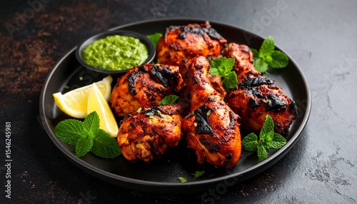 Char Grilled Tandoori Chicken Legs with Lemon and Green Chutney