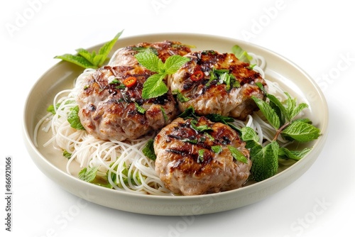 Charcoal-Grilled Pork Patties with Vietnamese Herbs and Noodles