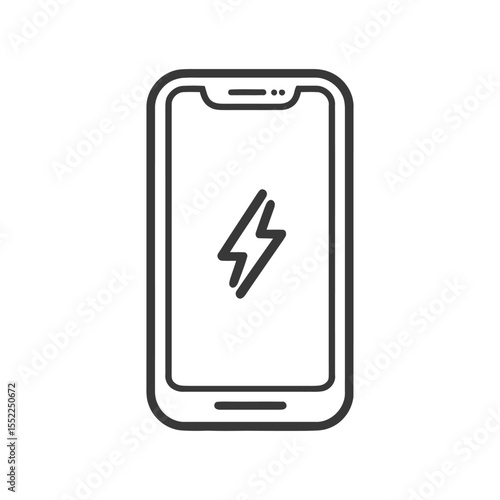 Charging Smartphone Icon: Modern Line Art with Lightning Bolt Symbol