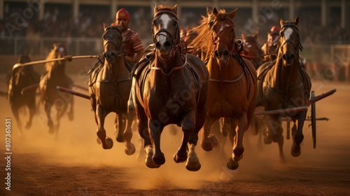 Chariot race at Circus Maximus Roman charioteers compete fiercely