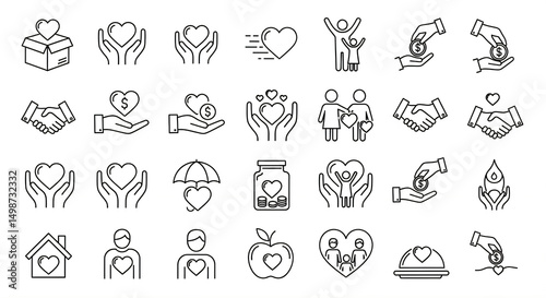 Charity & Donation Line Icons Symbols of Compassion and Support