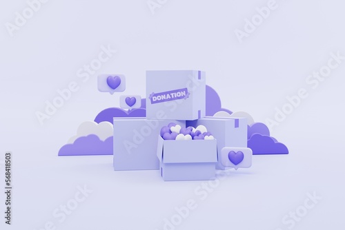 charity donation boxes concept in purple monochrome style. 3d illustration