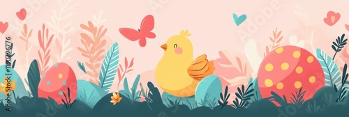 easter, chick, egg, spring, garden, decoration, pastel, butterfly, nubes, celebration, festive, nature, plant, colourful, floral, seasonal, joy, happiness, outdoors, cute, vibrant, lush, whimsy, playful, calm, background, cheerful, childlike, innocence, fauna, flora, growth, renewal, greenery, illustration, peaceful, holiday, tradition, delightful, charming, soft, leaf, wildlife, tranquil, serenity