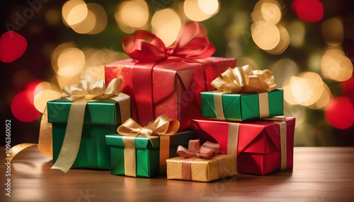 christmas, gift box, holiday, festive, present, decoration, wrapping paper, ribbon, bow, sparkling, cosy, warm, elegant, red, green, gold, cheerful, celebration, seasonal, glowing, traditional, christmas gift, decorative, family, joyful, charming