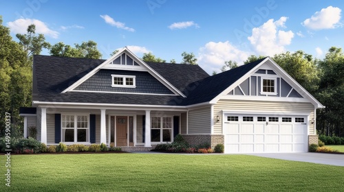 Charming House with Colorful Vinyl Siding, Modern Roof, and Stylish Gutters