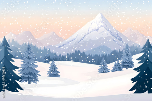 jan, greeting, card, design, serene, snowy, mountain, landscape, winter, forest, tree, snowflake, tranquil, peaceful, scenic, nature, holiday, fresh, crisp, elegant, pine, cold, wilderness, beauty, calm, day, season, timberland, frosty, allure
