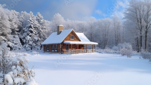 winter, snow, cabin, house, log cabin, landscape, nature, snowy, cold, tree, forest, wood, home, building, season, white, sky, blue, sunny, day, frost, ice, idylli, tranquil, peaceful, scenic, christmas, holiday, vacation, cosy, warm, architecture, exterior