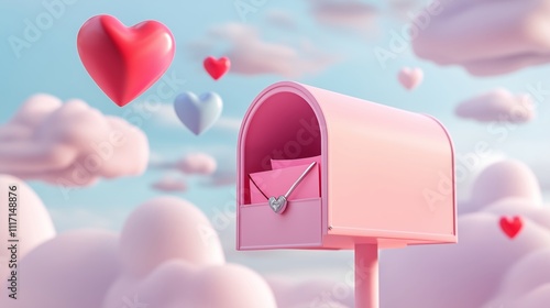 mailbox, heart, cloud, pink, sky, love, envelope, three-dimensional, valentine, romance, cute, floating, background, symbol, object, design, post, message, delivery, happy, sentiment, sweet, decorative, colourful, relation, affection, greeting, celebration, charming, joyful, dreamy, whimsical, youthful, fun, light, soft, cartoon, fantasy, artistic, creative, love letter