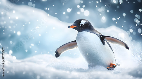 penguin, charming, snowflake, white background, winter scene, cold weather
