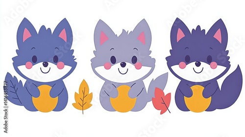 Charming pixelated wolves holding honey pots with autumn foliage offering a delightful scene ideal for endearing children's illustrations and surface design projects