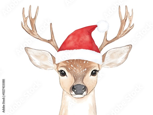 Charming Reindeer Wearing a Santa Hat Spreading Holiday Cheer and Festive Spirit