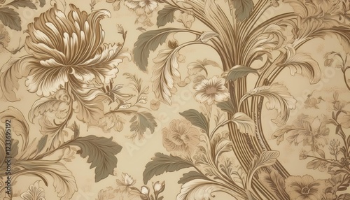 Charming Shabby Chic Floral Wallpaper in a Vintage Beige Background, Adding a Whimsical Touch to Any Space with Its Timeless and Romantic Aura