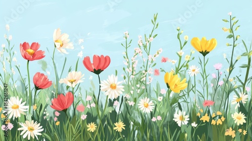 wildflower, poster, spring, holiday, cute, floral, hand-drawn, nature, botanical, colourful, blooming, cheerful, whimsical, vibrant, delicate, pastel, garden, flower, illustration, decorative, artistic, design, greeting, seasonal, card, aesthetic, vintage, soft, watercolor, vignetting, foliage, beauty, fresh, stylish, elegant, flower field, countryside, inspiring, joyful, refreshing, floral pattern, hand-made, organic, bright