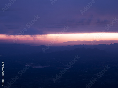 charming sunrise sky limestone mountain landscape at at Pha Nok An cliff. Phu Kradueng