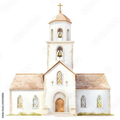Charming watercolor church illustration serene landscape architectural art peaceful environment artistic viewpoint, isolated on white background