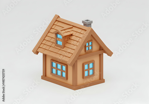 small house, computer graphic, rendering, render, digital artwork, illustration, model house, wood texture