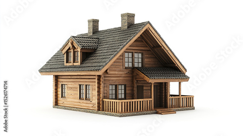 charming wooden house with sloped roof and welcoming porch, showcasing natural materials
