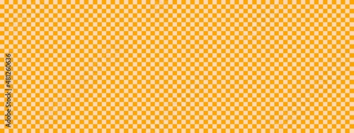 Checkerboard banner. Orange and Apricot colors of checkerboard. Small squares, small cells. Chessboard, checkerboard texture. Squares pattern. Background.