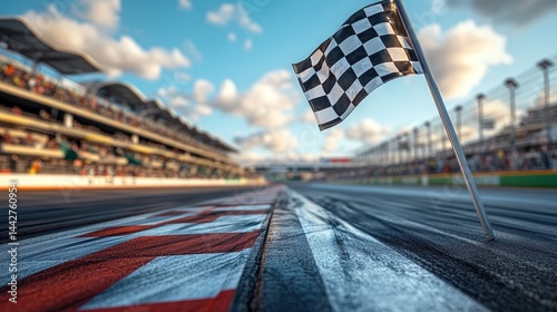chequered, flag, racing, finish, sunny, speedway, track, asphalt, sky, cloud, victory, competition, sport, event, spectator, motion, disrobed, line, closeup, perspective, outdoors, daytime, vibrant, excitement, fast, performance, dynamic, pattern, symbol, triumph, motorsport, automobile, high speed, decisive, moment, energy, scene, horizontal, sharpened, destination, result, precision, challenge, adrenalin, thrill