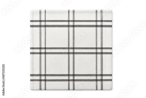 Checkered white-gray tablecloth lying flat, transparent background highlighting textile pattern for culinary styling