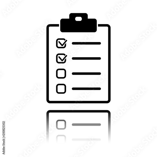 Checklist icon. Black icon with mirror reflection on white background