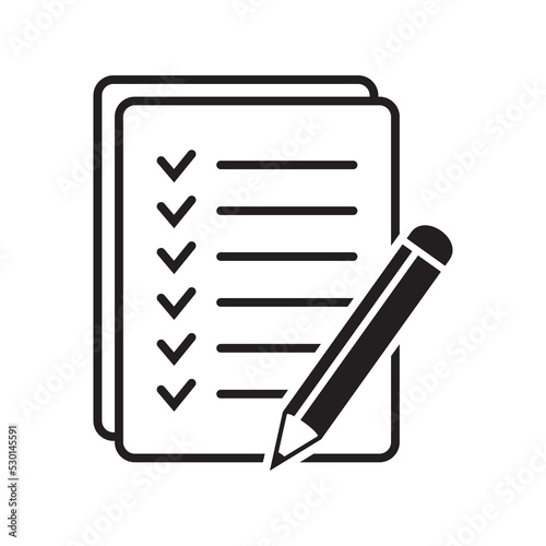 Checklist pencil vector icon, list icon. Black illustration isolated on white background for graphic and web design.