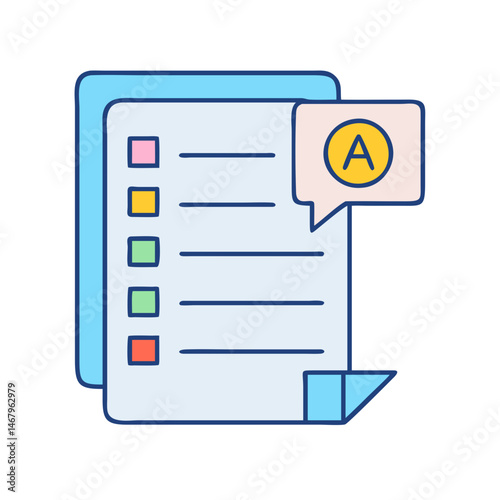 checklist, task, list, planning, project, management, speech, bubble, letter, a, organisation, schedule, reminder, note, paper, document, work, office, business, icon, symbol, signs, mark, square, colours, pink, yellow, green, orange, blue, outline, illustration, graphic, design, element, vector, clipboard, memo, agenda, check, message, communication, information, with