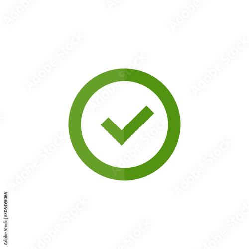 checkmark in a circle in flat style, on a white background
