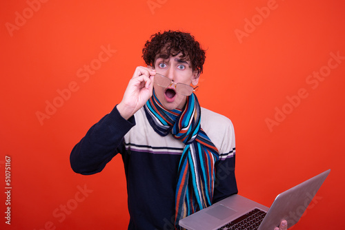 Cheerful funny student with a laptop.