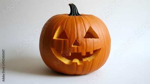 Cheerful Halloween Pumpkin with Classic Carved Face Displaying Joyful Expression Ideal for Autumn Festivities and Seasonal Celebrations in Home Decor
