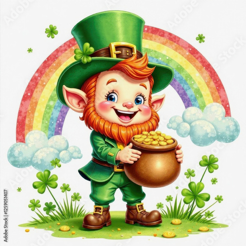 leprechaun, rainbow, lucky, charme, shamrock, clover, irish, green, celebration, holiday, fortune, wealth, prosperity, betting, gambling, casino, jackpot, winning, luck, lucky charm, cheerful, whimsical, cute, joyful, success, magic, fantasy, money, festive, folklore, digital artwork, happiness, vibrant, playful, cartoon, traditional, patrick, hat, illustration