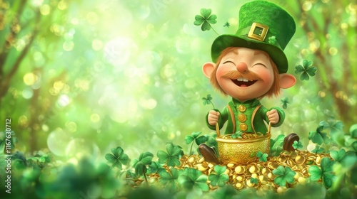 leprechaun, pot, gold, shamrock, green, celebration, luck, treasure, joy, happiness, nature, festive, spring, magical, cute, adorable, character, whimsical, bright, sparkle, cheerful, irish, folklore, cartoon, creative, background, design, holiday, excited, playful, smile, glimmer, shine, happy, charme, little, fantasy, colourful, animation, enigma, warmth