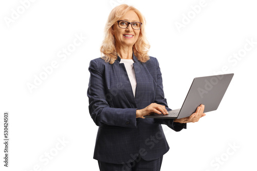 laptop, woman, businesswoman, 1, adult, background, boss, business, businessperson, career, communication, computer, corporate, elegant, enjoying, female, goggles, holding, cyberspace, isolated, job, manager, mature, occupation, 1, online, people, professional, shot, smile, smiling, standing, studio, success, suit, technology, attaching, typing, wireless, work, working, workplace