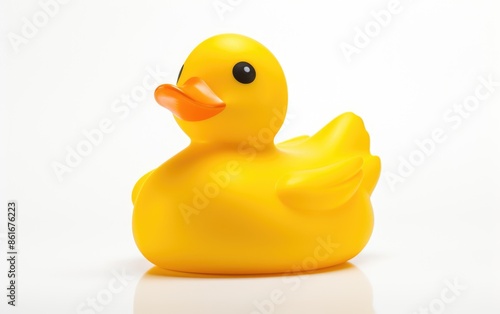 Cheerful Yellow Rubber Duck on White Background with Copy Space - Vibrant and Fun Realistic Photography for Design