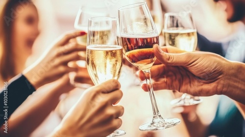Cheers Friends Toasting with Champagne and Wine