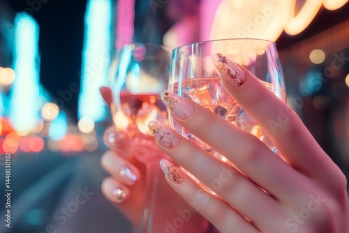 drink, cocktail, nail art, party, celebration, cheer, toast, glasses, hand, pink, wine, festive, gathering, night out, beverage, alcohol, enjoyment, social, event, bar, club, design, fashion, trend, stylish, elegant, refined, manicure, well-groomed, nail polish, social gathering, nightlife, joy, pleasure, fun, happy, delightful, relaxing, socialising, occasion, trendy, modern, luxury, sparkling, celebratory, refreshing, cheerful