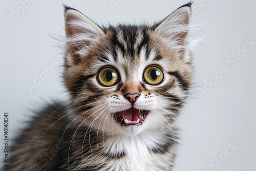 Cheery Kitten Portrait with Large Startled Eyes on Clean White Background