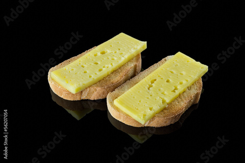 cheese, toast, bread, toasted, portion, slice, snack, breakfast, food, dairy product, product, healthy eating, isolated, black background, elegant