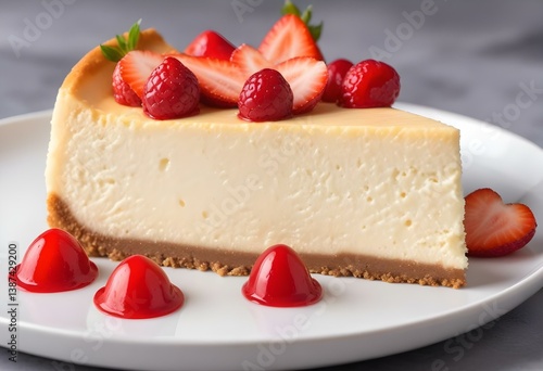 cake, cheesecake, cheese, dessert, white, slice, fruit, food, cream, sweet, red, berry, fresh, piece, sauce, epicure, pastry, decoration, delicious, plate, creamy, green, closeup, eat, background