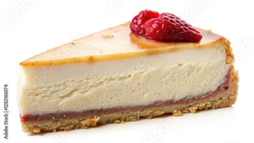 cheesecake, slice, strawberry, dessert, pastry, sweet, creamy, food, bakery, confectionery, culinary, gastronomy, white, background, isolated, studio, photo, angle, closeup, delicious, appetising, texture, crust, filling, topping, berry, red, fruit, dairy, baked, treat, wedge, portion, single, item, garnish