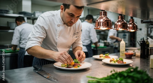 chef, plating, epicure, kitchen, professional, culinary, cooking, food, eatery, preparation, dish, cookery, art, sharpened, teamwork, presentation, meal, chef, technique, creativity, vegetable, ingredient, garnish, precision, skill, fine, dining, interior, ambience, tool, cutlery, concentration, elegance, copper, light, workspace, modern, scene, greener, herb, passion