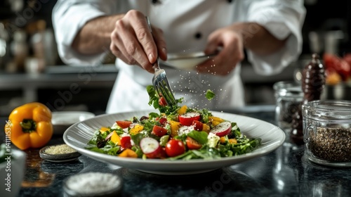 Chef Preparing Fresh Salad with Colorful Ingredients