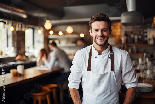 chef, eatery, cosy, evening, warm, culinary, art, cooking, hospitality, smiling, tied-up, ambience, epicure, kitchen, decor, service, food, favor, dining, table, counter, urban, career, profession, coat, tool, atmosphere, life events, rustic, skill, client, area, beverage, presentation, happy, teamwork, gastronomy, local, ingredient, clientele, hat, interaction, smile, engagement, menu, dish, preparation, generative