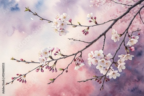 cherry blossom, flower, branch, watercolor, pink, purple, blue, white, bud, flower petals, nature, spring, bloom, delicate, artistic, serene, dreamy, soft, background, floral, beauty, botanical, garden, season, fresh, vibrant, pastel, gentle, elegant, natural, scenic, peaceful, tranquil, colourful, blossom, blooming, springtime, flora, plant, tree, outdoors, growth, nature scene