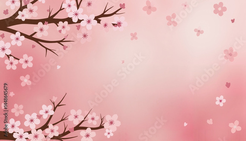 Cherry blossom branches on pink gradient background, minimalist floral illustration