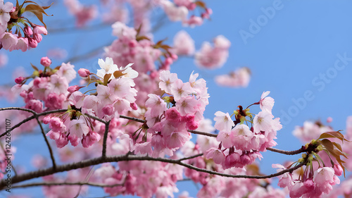 Cherry Blossom Flowers Blooming Against Clear Blue Sky