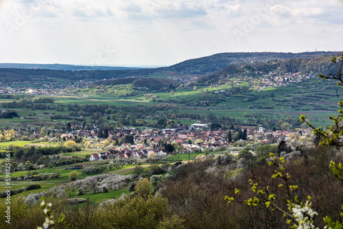 Cherry blossom on the hills around Pretzfeld, Germany in Franconian Switzerland