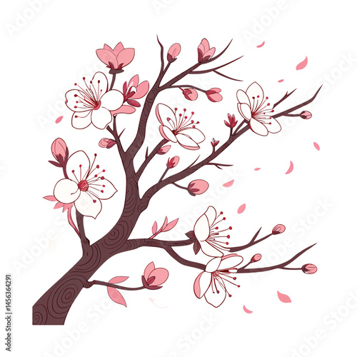 tree, flower, blossom, vector, cherry, nature, pink, design, floral, illustration, art, plant, beauty
