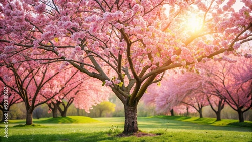 Cherry blossom tree with pink flowers blooming in a spring garden, cherry blossom, spring, nature, pink, flowers, tree